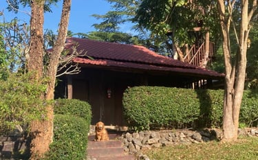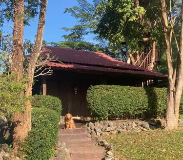 Our property offers a perfect blend of privacy and comfort. The bungalow, next to the main house, features a swimming pool and treehouse, with access to the kitchen and library. Enjoy recreational amenities like a snooker room, badminton court, and croquet lawn. A cook and housemaid are available for a small charge, and airport pick-up or transport to Wat Rong Khun can be arranged for an additional fee.